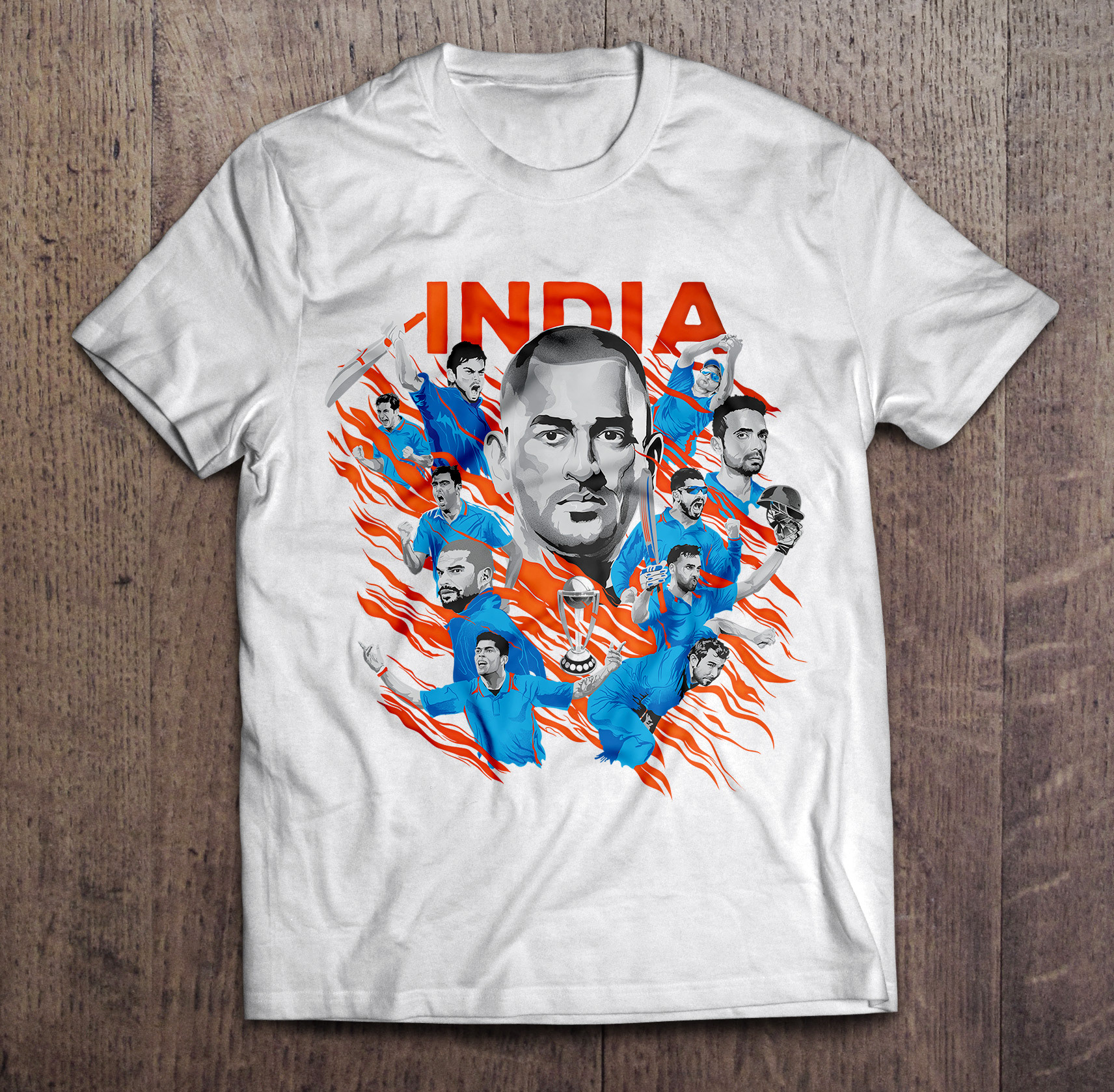 An Illustrated tribute to the Indian Cricket Team for the ICC World Cup 2015. This was initially done in Illustrator, and added diffused gradients and noise in Photoshop.