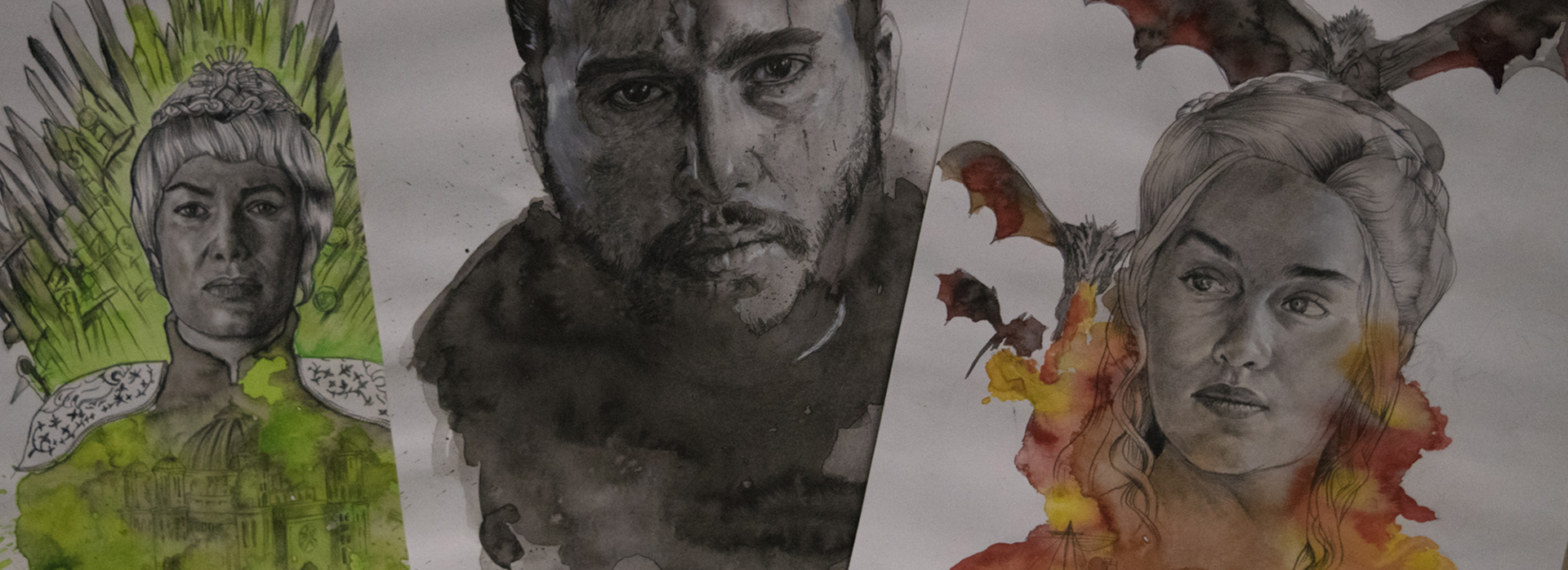 This is a personal project inspired by the HBO Television show 'Game of Thrones'. I've used watercolor and pencil on paper to illustrate three primary characters of the show at the end of season 6.