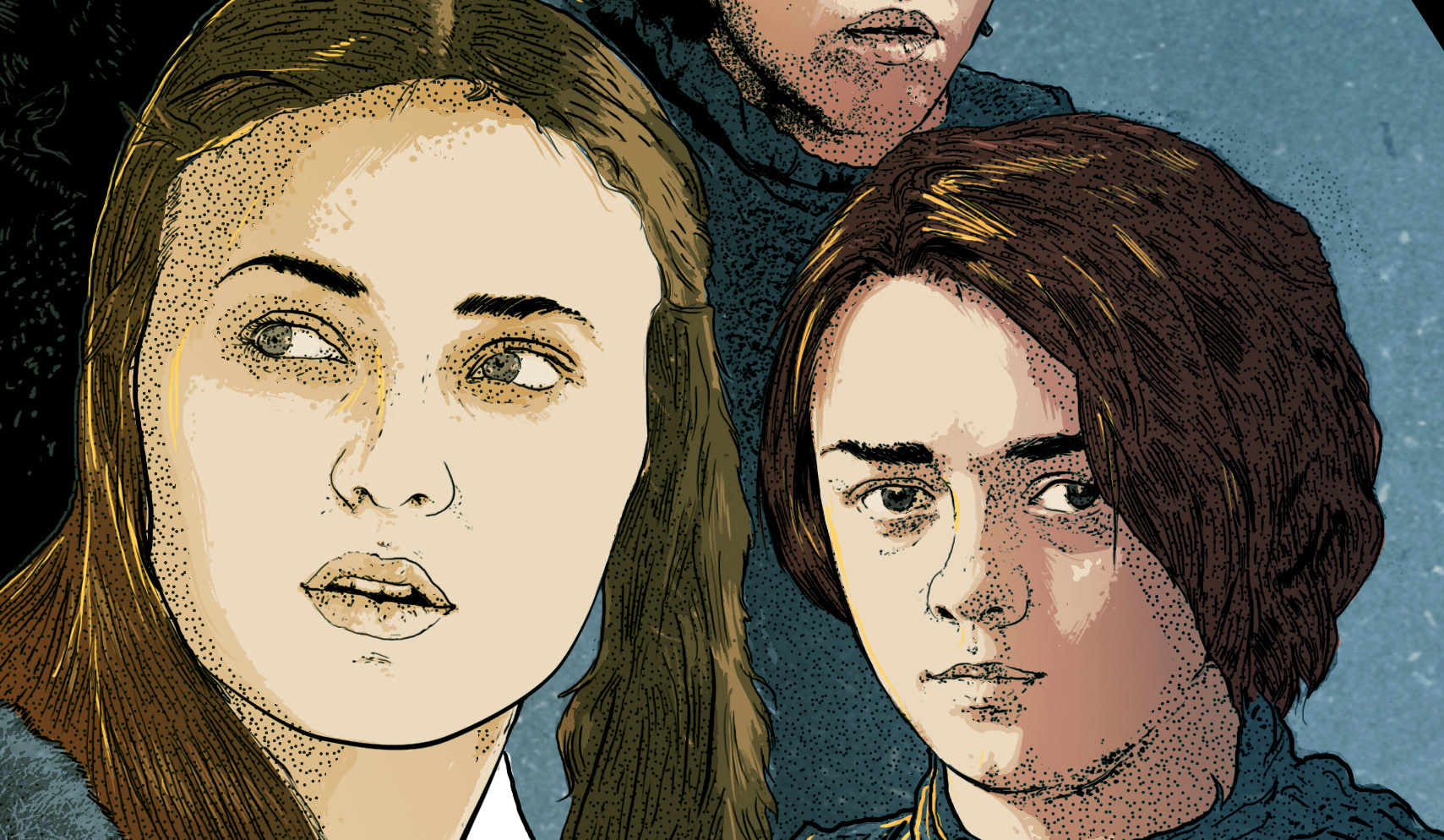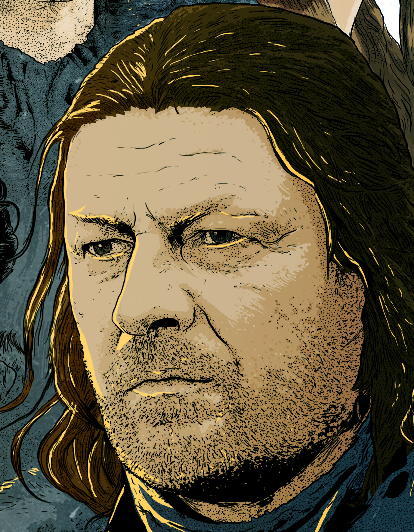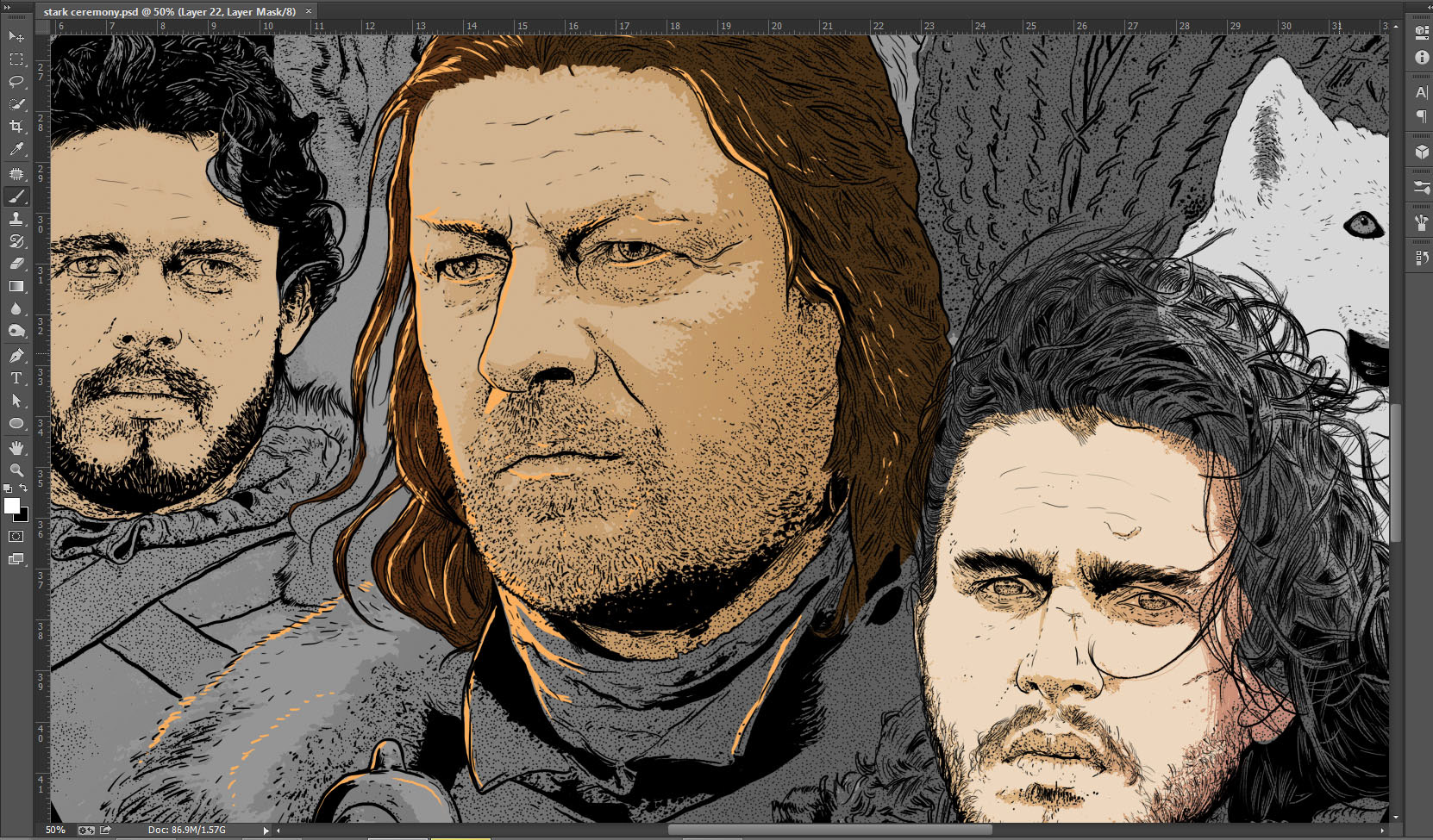 The Starks of winterfell from the Game of Thrones. Inspired bu the vintage style of illustration, this was sketched and inked on paper and later scanned and colored digitally.